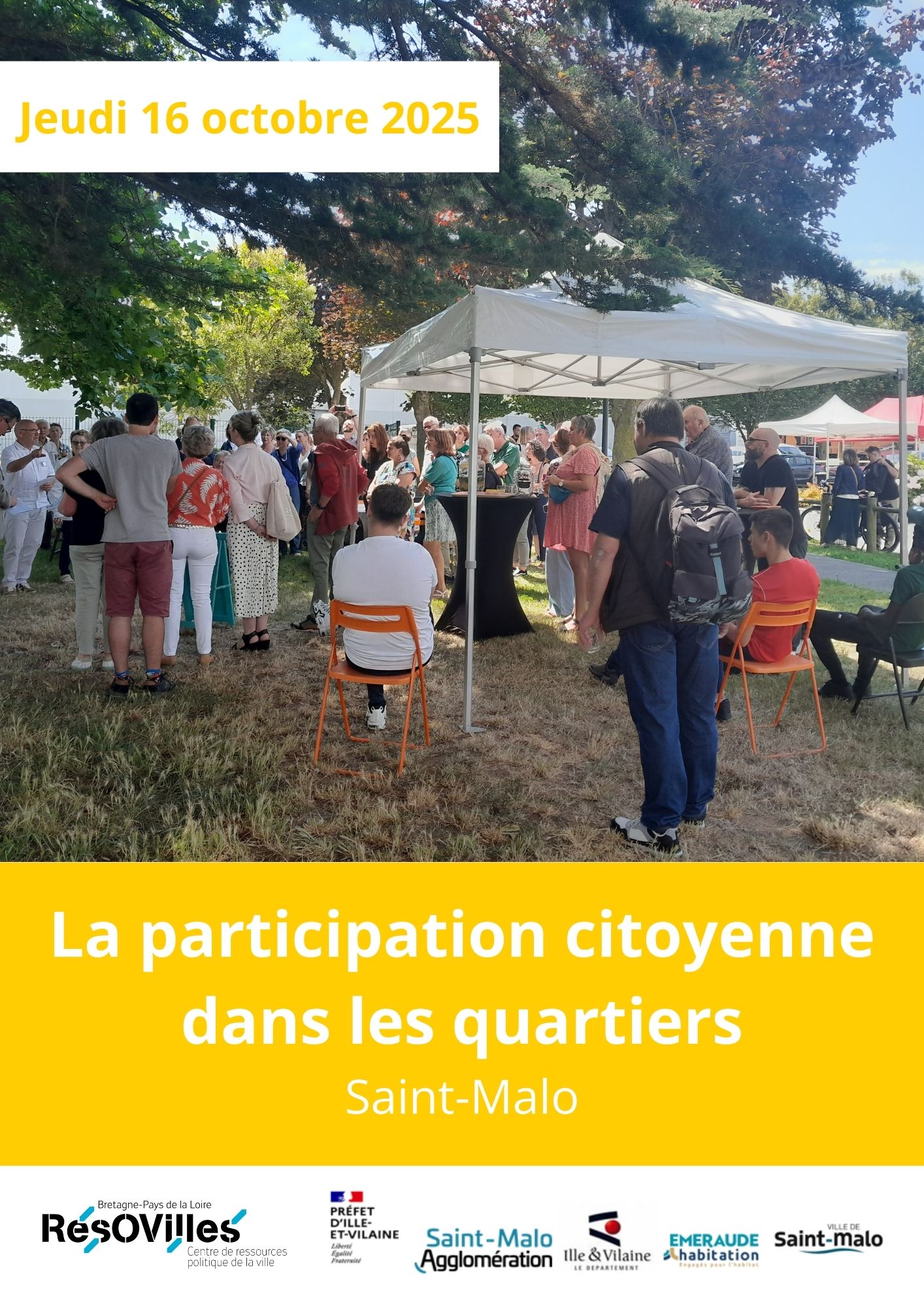 RésO Villes en partenariat avec la Ville et l’Agglomération de Saint-Malo, la Préfecture et le Département d’Ille-et-Vilaine et Emeraude Habitation, ont organisé une rencontre sur la participation citoyenne dans les quartiers populaires, le 16 octobre 2025.