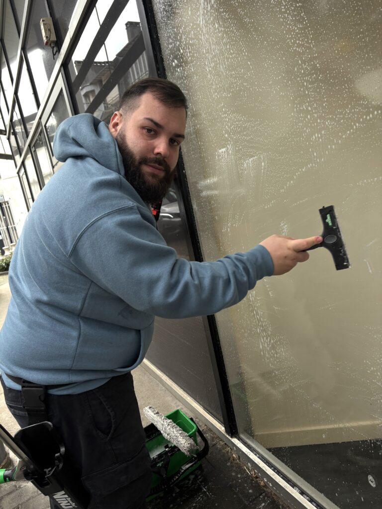 J’ai grandi dans un quartier de Saint-Brieuc. Ma mère est indépendante, elle a repris l’entreprise de mon père de rempaillage de chaises, alors je connaissais ce que c’était d’entreprendre. Initialement, je me suis formé dans la peinture, en CAP, puis j’ai commencé à travailler dans des entreprises, comme peintre. Je me levais tôt le matin pour aller travailler et je voyais que je ne gagnais que 10,50 € brut de l’heure. Je me disais que ce n’était pas normal de toucher aussi peu pour le travail que je fournissais. Pourtant, je savais que mon temps valait quelque chose. Je voulais être le vendeur de mon temps et non esclave du système. Alors, j’ai décidé de me mettre à mon compte dans la peinture, deux mois avant le Covid et les confinements. Cela n’a pas marché dans ce contexte : les gens ne voulaient plus que l’on vienne chez eux. Par contre, le nettoyage était en train d’exploser parce qu’il fallait tout désinfecter. Alors j’ai fait des formations dans ce domaine et je suis tombé amoureux du métier, en particulier le nettoyage des vitres.