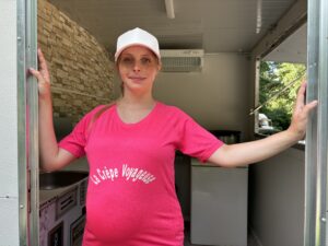 Je prépare des crêpes de froment salées et sucrées gourmandes, des recettes inspirées de mes découvertes. Quand j’étais petite, je faisais les crêpes chez mon père. Un jour, j’ai testé la garniture salée. C’était surprenant et délicieux. Voilà pourquoi toutes mes crêpes sont faites à la farine de froment, avec une garniture salée ou sucrée. Elles sont saines et moins caloriques que les fast-foods. J’aime créer du lien, faire plaisir et apporter un moment de chaleur où que je sois. C’est ainsi qu’est née mon entreprise itinérante : La Crêpe Voyageuse ! J’ai acheté et aménagé une remorque pour cuisiner. Après mon congé maternité, je commencerai du côté des universités, avec une formule complète accessible aux étudiants. J’irai aussi dans les zones industrielles dépourvues de restaurants. Je compte me déplacer en fonction des saisons et vendre mes crêpes dans toute la France. L’été, j’irai vers le sud, de camping en camping, selon les évènements, les fêtes comme le 14 juillet… Après, soit on reviendra pour les marchés de Noël, avec mon conjoint, soit nous ferons le tour de la France.