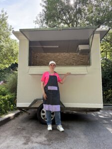 En janvier 2024, je suis retournée chez ma mère. Un jour en l’accompagnant au MAB (Marché Alternatif de Bellevue), j’ai découvert l’association pépinière d’initiatives jeunesse Nantes Ouest, nommée L’étincelle, qui venait d’ouvrir en bas de mon immeuble. Je me suis précipitée pour leur parler de mon projet. Ils m’ont orientée vers Citéslab et Les Déterminés, un programme d’accompagnement des entrepreneurs de six mois. J’ai pris plusieurs rendez-vous et je me suis inscrite pour participer à la Flashcoop « Osez entreprendre » avec l’Ouvre-Boîtes 44. J’ai suivi le dispositif « Tester le métier d’entrepreneur du culinaire en 7 jours, entreprise coopérative éphémère », en septembre 2024. En novembre, j’ai commencé Les Déterminés. Cela m’a beaucoup appris notamment sur la prise de parole en public, la confiance en soi et le fait d’être totalement indépendante… Je suis formée aux normes d’hygiène et sécurité. L’Adie aussi m’a aidée à obtenir le financement requis. Toutes ces étapes m’ont permis d’évoluer dans mon projet.